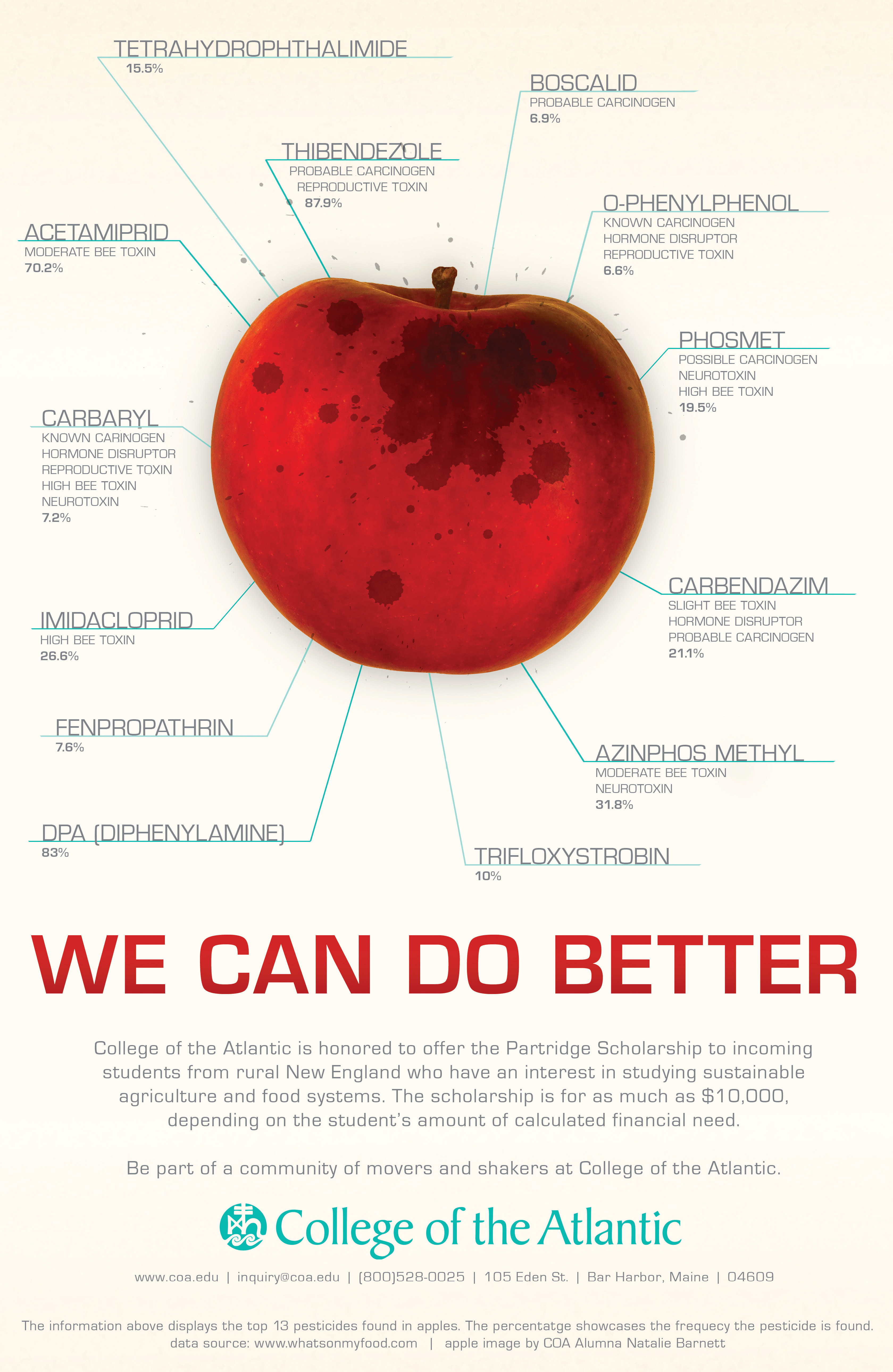 This was a poster created for the College of the Atlantic that was given to schools with farm programs for the advertisement of a farm scholarship program that the college was offering.